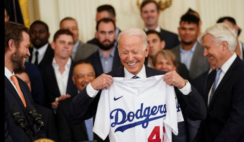 El presidente de los Estados Unidos, Joe Biden, recibió la visita de los Dodgers de Los Ángeles en la Casa Blanca como parte de las celebraciones tras conquistar la Serie Mundial en octubre del año pasado ante los Rays de Tampa Bay.