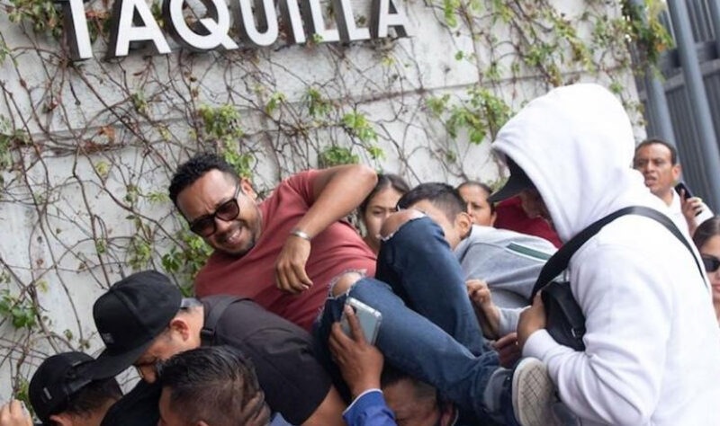 “Fuera, fuera, fuera”, gritaron quienes esperaban a una señora que supuestamente ya se había formado varias veces para obtener entradas.