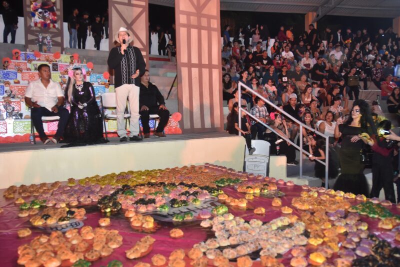 “Qué mejor que estar aquí, para vestirnos y representar nuestra cultura tradicional de honra a nuestros fieles difuntos, un abrazo hasta el cielo a todos los seres queridos”, expresó en presencia de regidores como invitados especiales.
