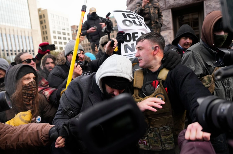 Jake Lang, quien organizó la manifestación a favor de la agencia, parecía estar herido al abandonar la escena, con moretones y rasguños en la cabeza. También se lanzaron bolas de nieve y globos de agua antes de que llegara una furgoneta policial blindada y la policía de Minneapolis, fuertemente equipada.
