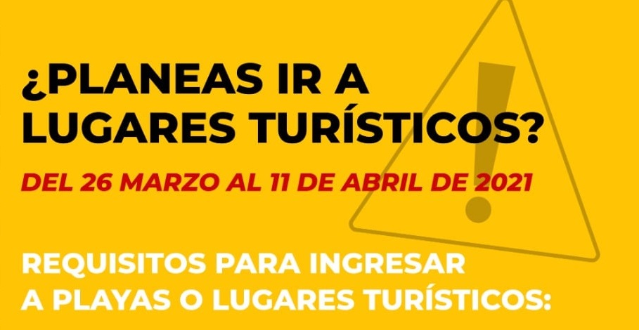 Para ingresar turistas a playas o lugares turísticos tendrán que presentar prueba PCR o de antígenos negativa a COVID-19 con no más de 72 horas de expedición por laboratorio, así como comprobar que se cuenta con reservación o con comprobante de domicilio en el lugar.