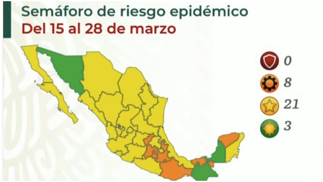 Las autoridades de Salud actualizaron, la noche del viernes 12 de marzo de 2021, el semáforo epidemiológico para los próximos 15 días. Campeche, Chiapas y Sonora están en verde.