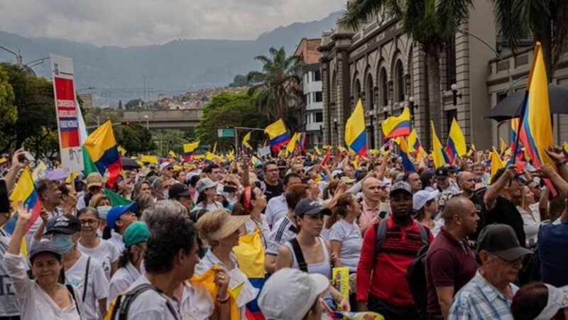 Según un reporte de la policía, unas 92 mil personas protestaron en todo el país también para oponerse a la llamada política de «Paz Total» con la que el gobierno pretende desarmar las organizaciones ilegales a cambio de beneficios penales, entre otras reformas que no cuentan con los votos suficientes en el Legislativo.