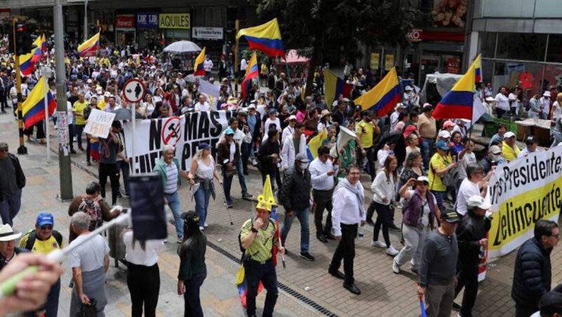 Según un reporte de la policía, unas 92 mil personas protestaron en todo el país también para oponerse a la llamada política de «Paz Total» con la que el gobierno pretende desarmar las organizaciones ilegales a cambio de beneficios penales, entre otras reformas que no cuentan con los votos suficientes en el Legislativo.