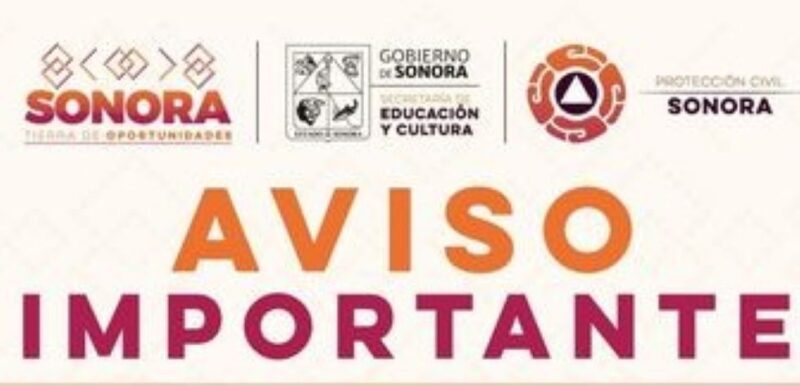 Hermosillo, Sonora; 11 de febrero de 2024.- Por recomendación de la Coordinación Estatal de Protección Civil (CEPC), el lunes 12 y martes 13 de febrero, se recorrerá dos horas la entrada en el turno matutino y se adelantará dos horas la salida en el turno vespertino en las escuelas públicas y privadas de nivel básico en 31 municipios de la entidad.