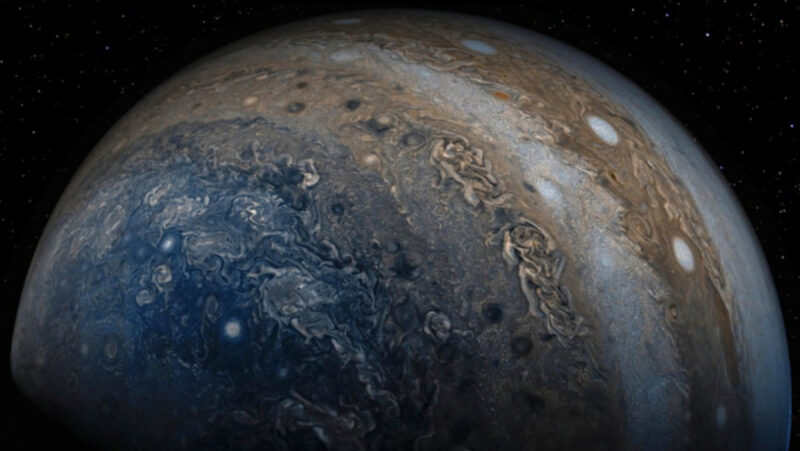 En redes sociales de la NASA, se reveló una fotografía de Júpiter, en la cual se logra a apreciar la superficie del planeta con las nubes remolineando sobre él, pero lo que más llama la atención es un punto brillante de color verde en el centro, que al parecer se debe a una luz que proviene del cuerpo celeste.