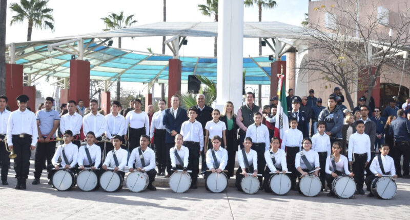 Acompañado de su esposa Luz Argel Gaxiola de Elías, el alcalde resaltó que la bandera nacional es un símbolo que une y fortalece la identidad de los mexicanos, impregnada de momentos y etapas fundamentales históricas, y