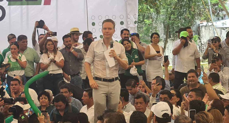 En su segunda visita a Chiapas como parte de su aspiración a representar los Comités de la Cuarta Transformación en el país, se reunió con empresarios hoteleros de Tapachula y posteriormente se trasladó al municipio de Huixtla y encabezó una asamblea informativa ante 15 militantes del PVEM.
