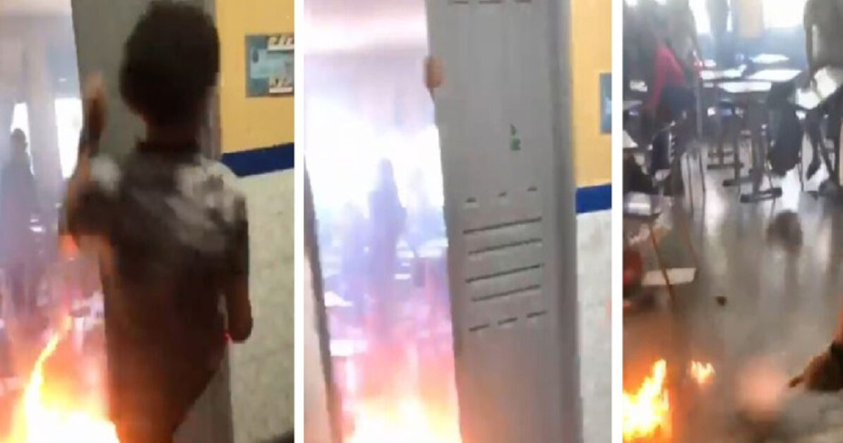 Mediante redes sociales se difundió un video donde se puede observar el momento donde, docentes del plantes y estudiantes trataban de sofocar el incendio con un extintor.