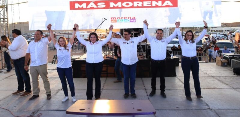En un evento multitudinario y lleno de entusiasmo, Juan Francisco Gim Nogales, candidato de Morena y la alianza «Sigamos Haciendo Historia» por la alcaldía de Nogales, celebró el cierre de su campaña acompañado por más de 5 mil nogalenses. El magno evento se desarrolló en los terrenos del parque industrial Yornom, donde poco a poco los ciudadanos abarrotaron el lugar, mostrando su apoyo y compromiso con el proyecto de Gim Nogales.