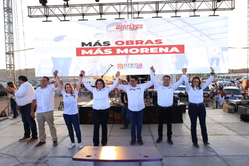 Nogales, Sonora .-En un evento multitudinario y lleno de entusiasmo, Juan Francisco Gim Nogales, candidato de Morena y la alianza «Sigamos Haciendo Historia» por la alcaldía de Nogales, celebró el cierre de su campaña acompañado por más de 5 mil nogalenses. El magno evento se desarrolló en los terrenos del parque industrial Yornom, donde poco a poco los ciudadanos abarrotaron el lugar, mostrando su apoyo y compromiso con el proyecto de Gim Nogales.