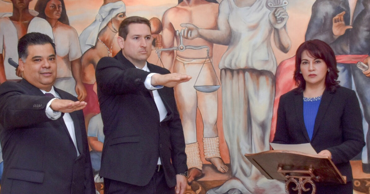 La Fiscal General, Claudia Indira Contreras Córdova, tomó hoy protesta al Dr. Ramón Tadeo Gradias Enríquez, como Vicefiscal de Control de Procesos, y al Mtro. Julián Gustavo Bustamante Pérez, como Vicefiscal de Derechos Humanos y Búsqueda de Personas Desaparecidas.