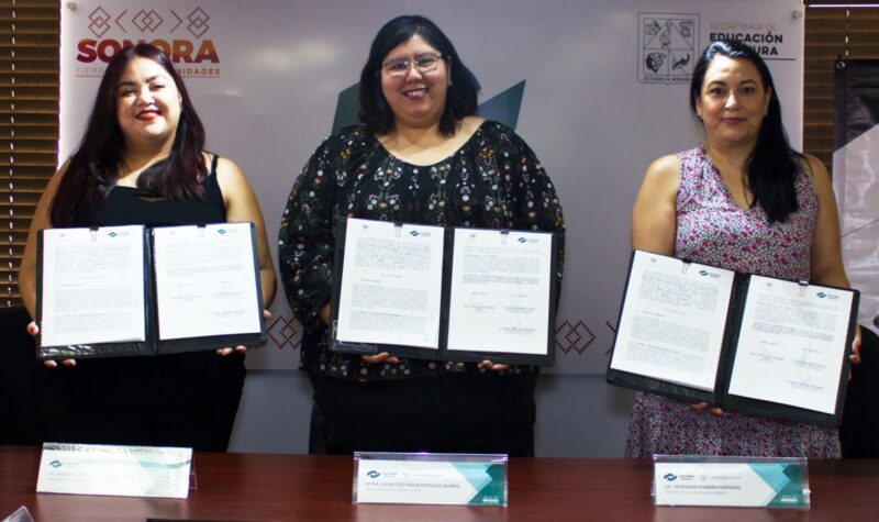 Luisa Cristina Rodríguez Ibarra, directora general de Conalep Sonora, firmó un convenio de colaboración con las directoras de los campus Nogales, Estefanía Romero y campus Guaymas, Abigail Arellano, para formalizar el otorgamiento de becas y apoyos que permitan a las comunidades de las instituciones participantes, continuar sus estudios y profesionalizarse.