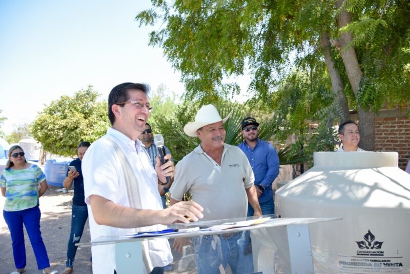 El mandatario presidió este martes la entrega de tinacos y cisternas a 27 familias de Bacabachi, gestionados por el ayuntamiento vía CMCOP en coordinación con la asociación “Mariana Trinitaria”.