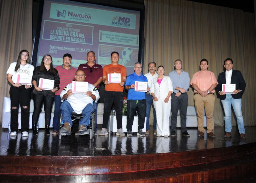 Navojoa, Sonora a 12 de mayo de 2022.- Con el objetivo de fomentar el deporte en todas sus disciplinas para que la ciudad vuelva a ser competitiva en torneos regionales, estatales y nacionales, el H. Ayuntamiento, en coordinación con el Instituto Municipal del Deporte (IMD), organizó el foro: Coalición deportiva, “la nueva era del deporte en Navojoa”, en el que participaron deportistas destacados.