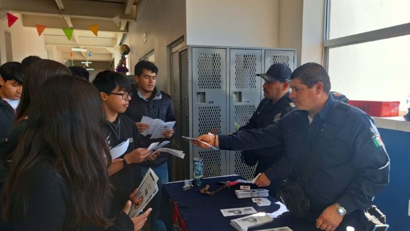En la jornada que comenzó alrededor de las nueve de la mañana hasta las una de la tarde, los policías interactuaron con los estudiantes de ese plantel educativo a quienes les dieron algunos folletos en los que se pueden leer los números telefónicos de emergencia, las direcciones de las instituciones y organismos que atienden problemas de violencia y adicciones.