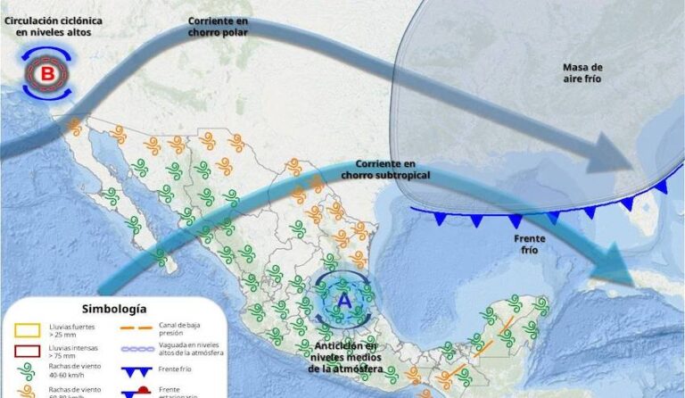 Así mismo, durante el día 19 de abril, se prevé la aproximación de un nuevo sistema frontal al noroeste del país, el cuál generará un ligero descenso en las temperaturas, así como posibles fuertes rachas de viento. Posterior a eso, otro sistema frontal se aproximaría al norte del país reforzando las condiciones meteorológicas anteriores.