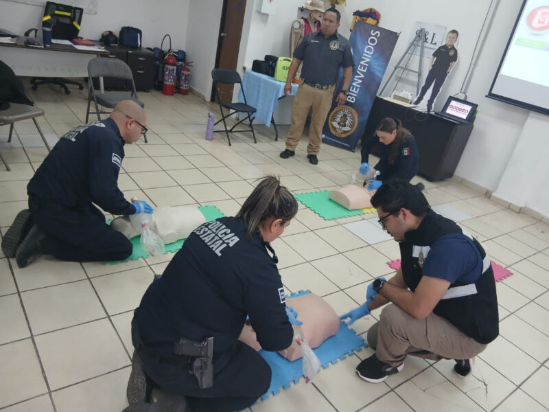 Hermosillo, Sonora;- Cinco paramédicos de la Policía Estatal de Seguridad Pública (PESP) participaron en el curso Soporte Vital Básico para fortalecer el entrenamiento en RCP y otras habilidades básicas de soporte vital cardiovascular, impartido por la asociación American Heart.