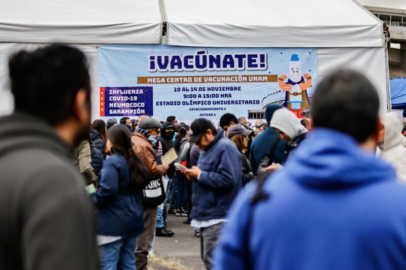 En un horario de 09:00 a 15:00 horas, personal de salud aplica vacunas contra influenza, COVID-19, neumococo y sarampión, como parte de la estrategia nacional para reforzar la prevención de enfermedades respiratorias invernales e infecciosas.