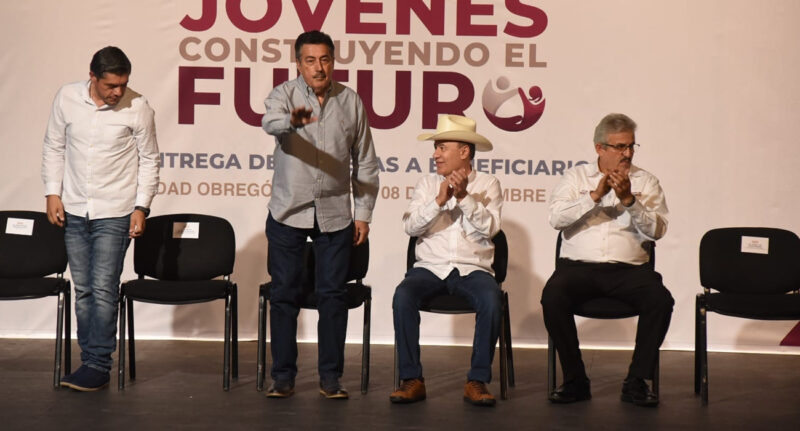 Participaron, el Senador Arturo Bours Griffith; el Delegado estatal de Bienestar, Jorge Luis Taddei Bringas; el Director Regional de Bienestar en Cajeme, Bernabé Arana Rodríguez y el responsable del programa Jóvenes Construyendo el Futuro, Alberto Vázquez Valencia.