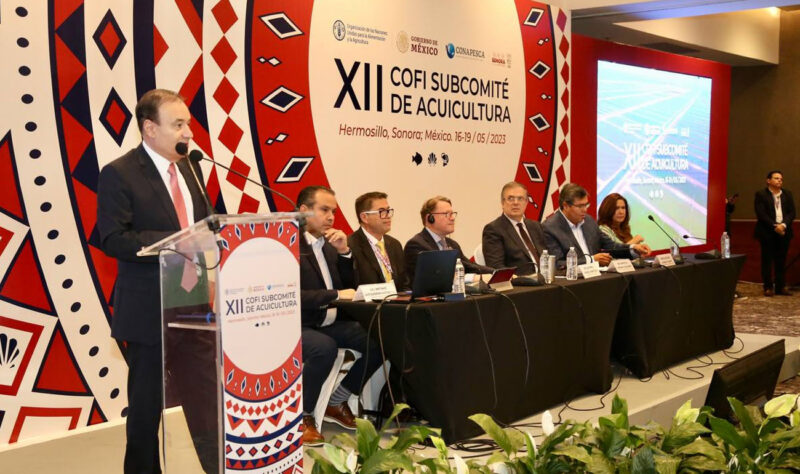 “El estado de Sonora produce el 35 por ciento de la producción pesquera y acuícola de México; más de un tercio se produce aquí. Hay más de 21 mil familias que se dedican a esta actividad. En acuicultura, es el estado más destacado de México. Tiene 157 unidades de producción en camarón, 27 de moluscos, 12 de peces. Y la tendencia es que va a crecer cada vez más. La contribución de este estado es muy significativa para la seguridad alimentaria de México”, comentó.