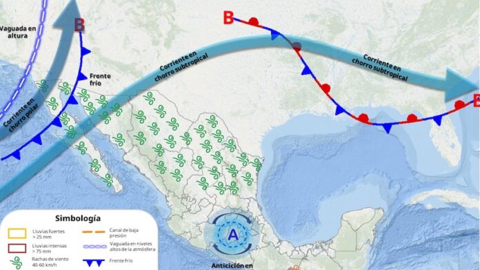 Se espera que durante su ingreso origine rachas de viento fuertes (60 km/h) sobre municipios del noroeste, norte y noreste. Aunado a esto, precipitaciones ligeras con puntuales moderadas en las regiones del norte, noreste, este y sur.