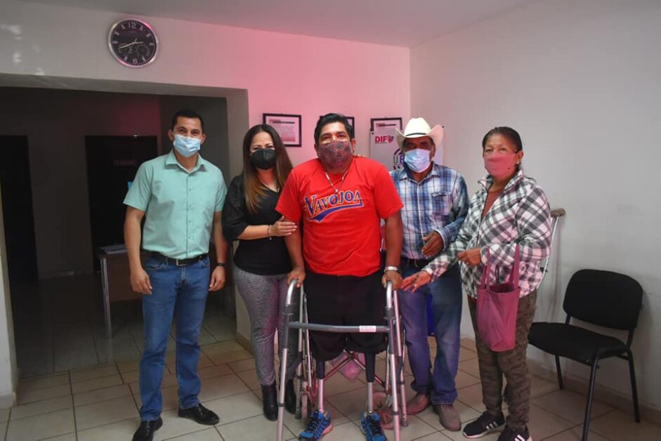 Navojoa, Sonora- Con orgullo y satisfacción por segunda ocasión en lo que va de la presente administración, el Sistema DIF Municipal a través de la Unidad Básica de Rehabilitación (UBR) hizo entrega de tres prótesis para piernas para mejorar la movilidad de dos pacientes de este municipio.