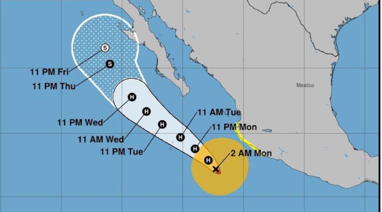 Se anticipa que el fenómeno se desplace de forma paralela a la costa occidental de México, hacia el noroeste del país.