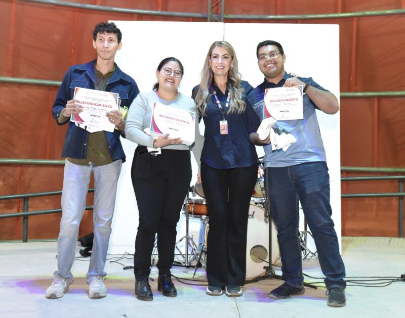 Hermosillo Sonora, 11 de noviembre, 2024.- Los ganadores del concurso de fotografía de insectos fueron premiados por la directora de Desarrollo Turístico de Hermosillo, Fernanda Cisneros Rodríguez, al cierre de la exposición internacional INSECTUS que estuvo por un mes en el Parque Madero.