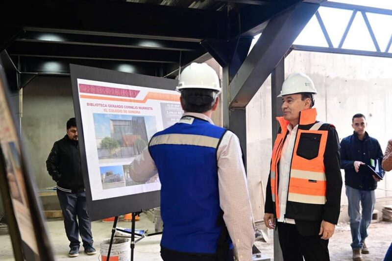 Hermosillo, Sonora; de enero de 2024.- La construcción de la biblioteca del Colegio de Sonora representará la instalación más grande de su tipo en la entidad, la cual cuenta con una inversión de 16.29 millones de pesos y con un avance del 85%, beneficiando hasta 500 mil personas, informó el gobernador Alfonso Durazo Montaño.