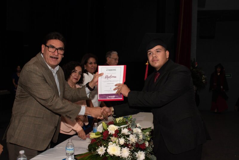 Acompañado por la Síndica Edna Soto Gracia, la Regidora Lydia Adelaida Gutiérrez Gómez, así como por la Directora de Educación Municipal, Janet Zamora Mendívil; la Directora de la Preparatoria Municipal, Isabel Morales Méndez y por el Subdirector de la extensión La Mesa Teodoro Villegas Escárcega, el Presidente Municipal dirigió un mensaje en el que invitó a los graduandos a que se sigan preparando académicamente para que en el futuro sean mujeres y hombres de bien que le aporten algo positivo a la sociedad.
