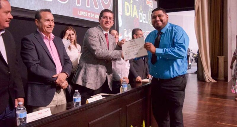 Este lunes dicho festejo tuvo como sede el Auditorio Municipal, en medio de un ambiente de cordialidad entre las autoridades del ayuntamiento y dirigencias de las secciones sindicales 28 y 54 del SNTE, incluyéndose estímulos económicos, rifa de artículos y espectáculo artístico-cultural.