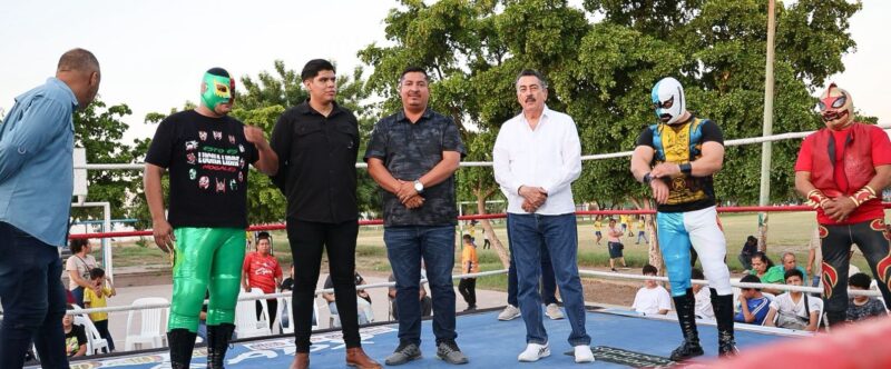 “La lucha libre es la cultura del pueblo mexicano, así que me da mucho gusto que estemos aquí esta tarde, y les adelantó que también en su momento vamos a tener box, un campeonato de barrio de box, ahora vamos con la lucha libre, me da mucho gusto y me da emoción, la lucha es de verdaderos atletas, vamos a ver un espectáculo extraordinario de lucha y vamos a ir colonia por colonia, a la Villa Bonita, Villa Fontana, Urbis, Sochiloa, Sonora, Kino, Ladrillera, Benito Juárez y hoy estuvimos aquí en la Libertad, arrancamos con este programa de lucha libre para toda la gente de Cajeme, pero principalmente para las niñas, niños y los jóvenes, que viva la lucha libre del pueblo”, expresó.