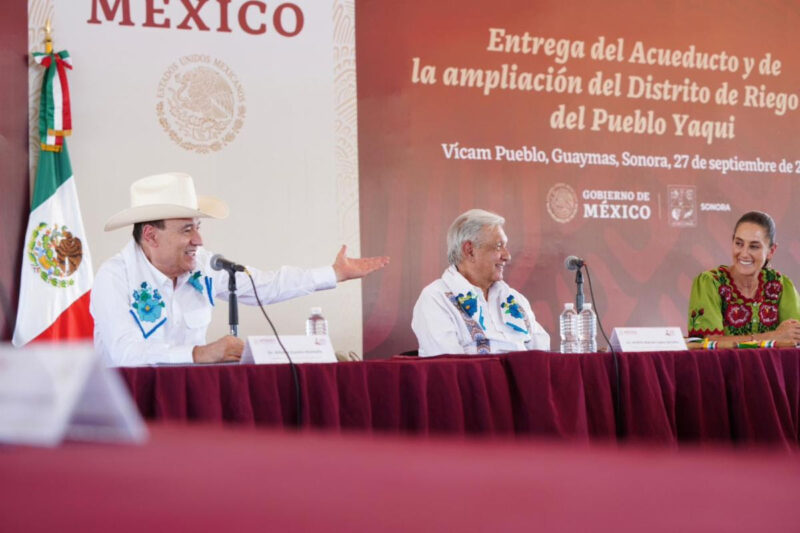 Durante la última gira presidencial por Sonora, el presidente López Obrador, acompañado por la presidenta electa Claudia Sheinbaum Pardo y el Gobernador Durazo, entregaron el Distrito de Riego 018