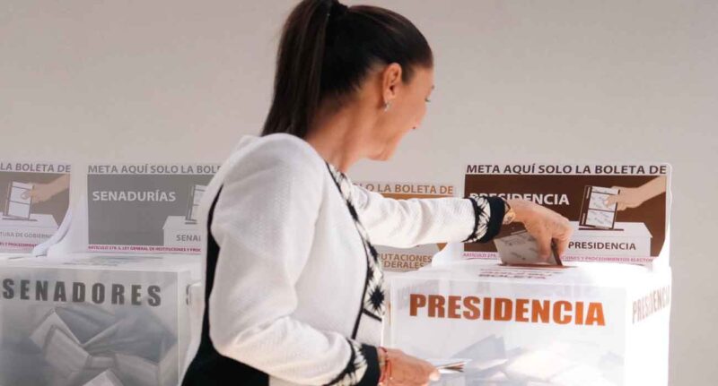 Al salir de la casilla, con mucha alegría, Claudia Sheinbaum informó su votación a favor de la continuidad de la Cuarta Transformación en todos los comicios que se disputan durante esta jornada electoral.