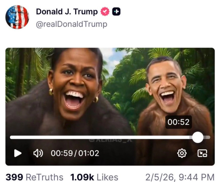 Washington. El presidente de Estados Unidos, Donald Trump, desató ayer furia e indignación entre los demócratas después de publicar un video, en su cuenta de Truth Social, en el que mostró al ex mandatario Barack Obama y su esposa Michelle como monos en una jungla, en el marco de teorías conspirativas sobre las elecciones de 2020. La Casa Blanca atribuyó la publicación a “un error” de un funcionario y Trump afirmó que no se disculpará porque el error no fue suyo.