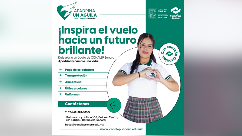 Con la finalidad de fomentar el altruismo y la solidaridad entre la comunidad escolar, el Colegio de Educación Profesional Técnica del Estado de Sonora (Conalep), reactivó el programa de becas “Apadrina un Águila”, anunció Luisa Cristina Rodríguez Ibarra.