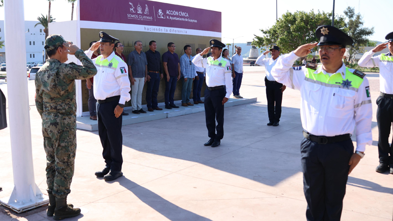 Como parte del compromiso de la Doctora Karla Córdova González para fortalecer el valor y respeto de los símbolos patrios, el Ayuntamiento de Guaymas a través de Acción Cívica Municipal realizó izamiento de nuestro Lábaro Patrio.