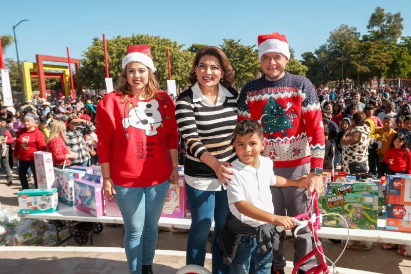 Al tomar la palabra, la primera dama, Andrea Cota Murillo, manifestó que esta época se caracteriza porque son tiempos de dar y compartir, pero sobre todo de brindar amor, calidez y felicidad a los niños de la región del mayo.