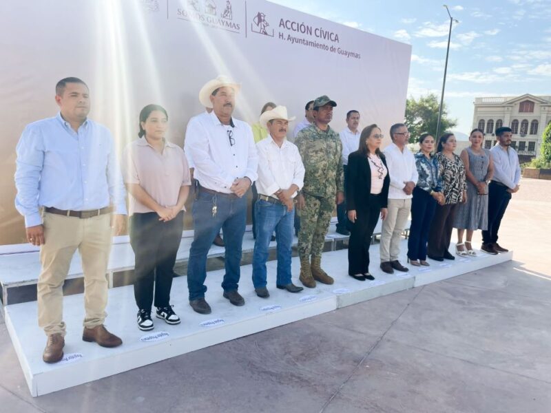 Guaymas, Sonora, 07 de octubre de 2024.- Para refrendar los valores de respeto a los símbolos patrios, este lunes el Ayuntamiento de Guaymas en coordinación con Acción Cívica, celebró la ceremonia de izamiento de Bandera en la Plaza Tres Presidentes.