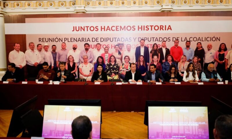 Hermosillo, Sonora; 29 de enero de 2024.-En el marco del inicio del segundo periodo ordinario del tercer año de trabajo legislativo, las y los diputados de la coalición Juntos Haremos Historia y el Poder Ejecutivo celebraron su reunión plenaria, a fin de evaluar el avance en la agenda legislativa y analizar las áreas de oportunidad en los distintos órdenes de gobierno.