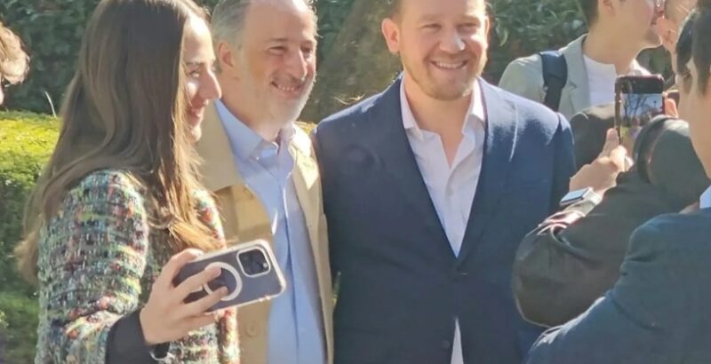 En su arribo al plantel para un encuentro con universitarios, Santiago Taboada intercambió un abrazo con Pepe Meade, con quien posó para un par de fotos.