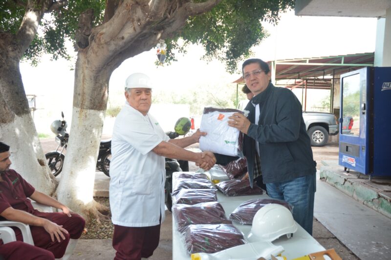 Navojoa, Sonora, 30 de noviembre 2023.- Uniformes y equipamiento diverso de trabajo recibió el personal del Rastro Municipal de manos del alcalde Jorge Alberto Elías Retes, quien reiteró el apoyo institucional para el mejoramiento y modernización en la infraestructura operativa.