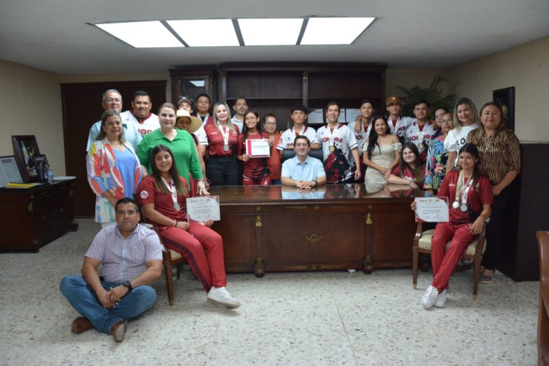 Navojoa, Sonora, 16 de junio 2023.- Con una gran felicitación y sentimiento de orgullo expresado a nombre de los navojoenses el alcalde Jorge Alberto Elías Retes recibió en Palacio a los jóvenes campeones nacionales softbolistas que participaron en el torneo de CONADE en Villahermosa, Tabasco.