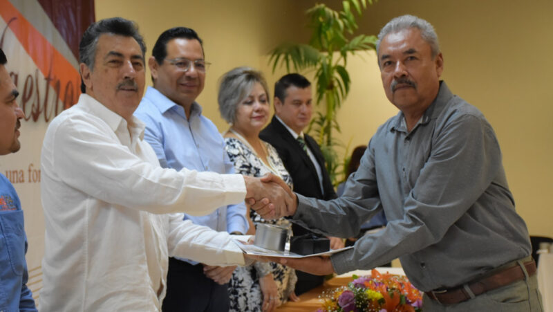 Por su parte, el Secretario General de la Sección 54 del SNTE, Jesús Javier Ceballos Corral, agradeció al munícipe por su participación en esta ceremonia de reconocimiento a quienes han formado a cientos de generaciones de niñas y niños en el municipio; además felicitó a las y los docentes hoy reconocidos por acudir al llamado de su dirigencia sindical y estar presentes en este día que reciben homenaje por su trayectoria pedagógica.