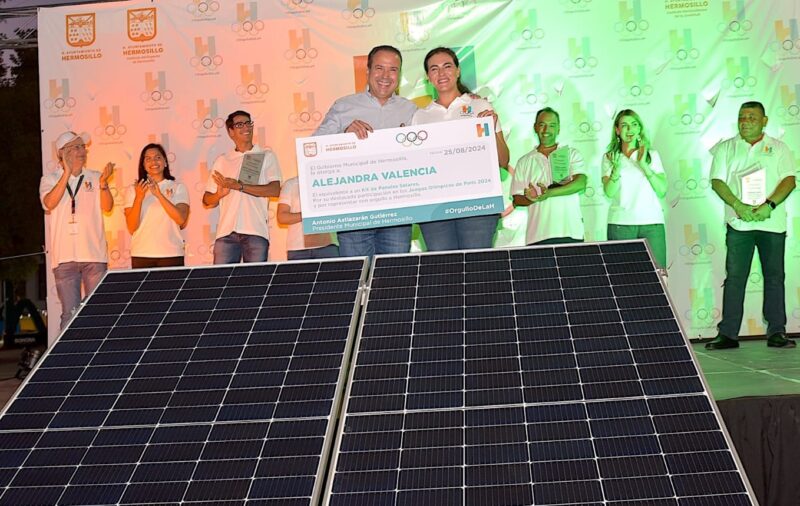 “Hoy hacemos entrega de este apoyo, porque a diferencia de lo que un deportista puede recibir al regresar de las olimpiadas, como es un apoyo económico o una beca, yo lo que quería que este apoyo les durara mucho más que su vida deportiva y hoy en Hermosillo, a la que se conoce como la Ciudad del Sol, queremos que esto se convierta en energía limpia para la casa de Alejandra y de Tonatiuh, que en lugar de recibir una beca por uno, dos o tres años, reciban un descuento importante en su recibo de luz por los próximos 25 años”, expuso.