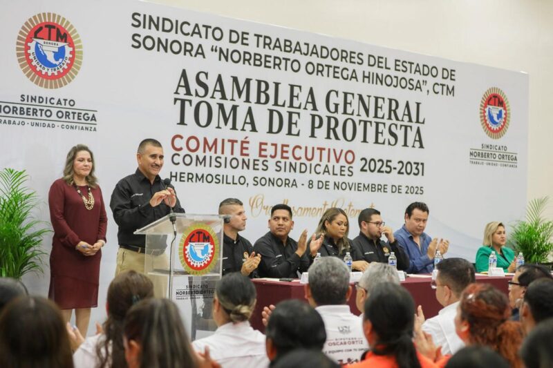 Hermosillo, Sonora; a 9 de noviembre de 2025.– Ante la presencia de más de mil trabajadores, se llevó a cabo la toma de protesta del Comité Ejecutivo y Comisiones Sindicales 2025-2031 del Sindicato “Norberto Ortega”, organización adherida a la CTM de Hermosillo.