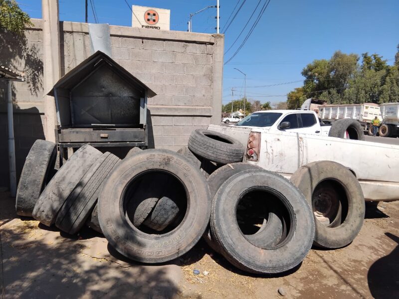 Navojoa, Sonora, 8 de mayo 2024.- Poco más de 6 toneladas de llantas en desuso fueron recolectadas en llanteras ubicadas al oriente de la ciudad, como parte de las acciones de combate contra el mosco transmisor del dengue por parte del ayuntamiento a través de la Dirección de Salud.