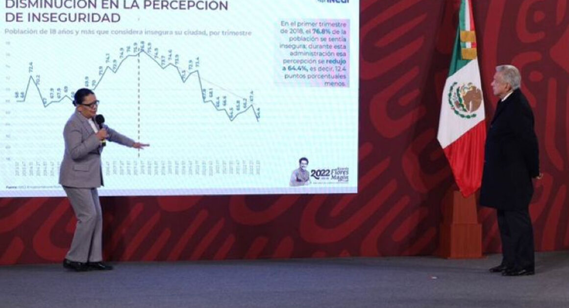 “En el homicidio doloso disminuyó en 13.9 por ciento y es el septiembre más bajo hasta hoy desde hace 5 años”, dijo Rosa Icela frente al presidente Andrés Manuel López Obrador.