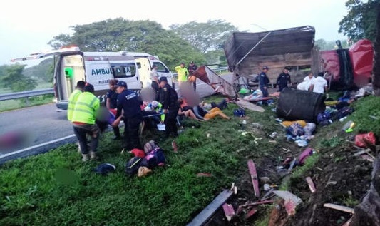 El siniestro ocurrió en un tramo entre las localidades de Pijijiapan y Tonalá, en la costa chiapaneca, en torno a las 5.50 horas de la madrugada, cuando un camión que transportaba a unos 40 migrantes volcó sin que por el momento se conozcan las causas,